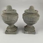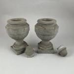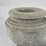 Paire de VASES de jardin couverts de forme balustre en marbre tourné à décor de cannelures.XXe siècle. Hauteur : 37 cm. Diamètre : 21 cm.