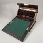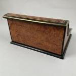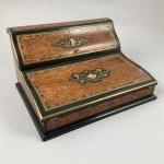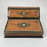 ECRITOIRE en placage de loupe de noyer dans des encadrements de bois de rose, bois...
