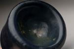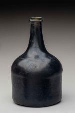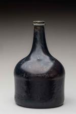 BOUTEILLE en verre soufflé à panse basse et haut col resserré.