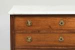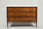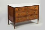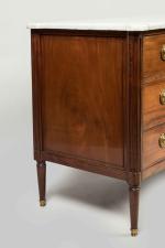 COMMODE en acajou massif. Les côtés reçoivent des panneaux dits à plats-de-bandes, et sont reçus dans...