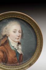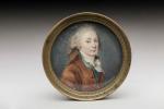 Portrait en buste présumé d'Alexandre, comte de Lameth, en redingote couleur terre-cuite et gilet vert-de-bleu, vers 1790.