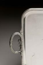 PUIFORCAT. PLATEAU de service en argent à décor de joncs rubanés et feuillagés. Les anses...