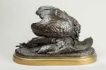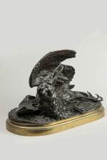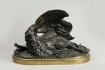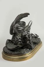Alexandre LEONARD (Paris, 1821 - 1877)"Butor blessé", 1867.Bronze patiné signé sur la terrasse reposant sur...