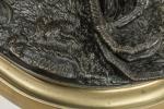Bronze patiné signé sur la terrasse reposant sur une base en laiton mouluré.