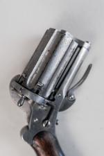 POIVRIERE en calibre 7 mm à broche, fabrication belge. Capacité 6 coups, finition en acier...
