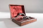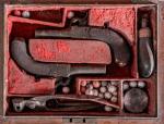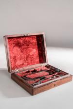 PAIRE de PISTOLETS DE POCHE à balle forcée en coffret avec accessoires.