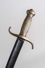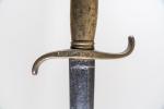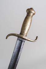 SABRE composite reprenant la garde d'un GLAIVE d'infanterie prussien modèle 1849. Poignée en laiton à pommeau ovale, fusée striée d'un côté et lisse de l'autre, quillons contrariés en S.