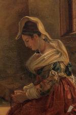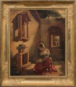 Entourage de Louis Léopold ROBERT (1794-1835)Jeune italienne en prière.Huile sur toile.Hauteur : 45,5 cm. Largeur...