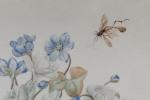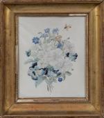 Elisa Emilie NAVARRE-LEMIRE (1807-1868)Jeté de fleurs blanches et bleues à la guêpe. Aquarelle signée...