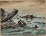 Raymond BLOSSIER (XXe) "Sur la Côte de granit rose". Aquarelle signée et titrée en bas à droite. Hauteur : 25 cm. Largeur : 32 cm.