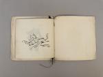 In-8 carré (corps d'ouvrage : 163 X 163 mm. Couvertures illustrées : 190 X 180 mm), broché. 24 pages non chiffrées, soit 12 feuillets agrafés, et liés par un cordon de soie bleue. (Bord des couvertures froissé ; manque circa 1 cm2 dans l'angle inférieur de la première de couverture. Légère trace de rouille laissée par une agrafe, au verso de la couverture.