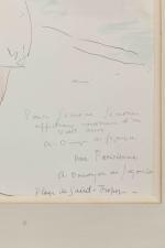 Planche en couleurs extraite de l'ouvrage "Côtes Roties". Titrée, signée, et dédicacée "Pour Simone Simon affectueux souvenir d'un vieil ami".