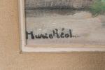 Marie-Marguerite REOL (Massiac, 1880 - Ploaré, 1963)"Bouquet dur ma fenêtre à Espalion". Huile sur toile...
