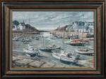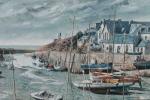 Georges BONCORS (XXe) Le port de Dahouët. Huile sur toile signée en bas à gauche. Hauteur : 60 cm. Largeur : 81 cm.