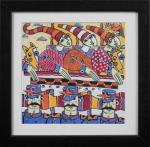 Claudine GEORGET (XXe)Frise festive.Technique mixte signée dans la composition.Hauteur : 20 cm. Largeur : 20 cm. (A vue).